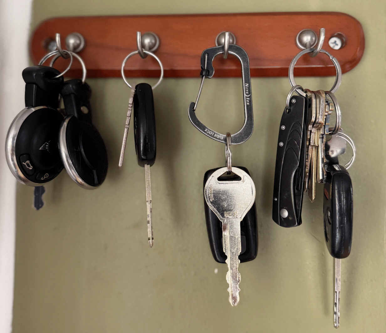 After one too many mornings of me spiraling around the house, muttering accusations at thin air, my wife had enough. She bought a key hook and screwed it into the wall by the door.